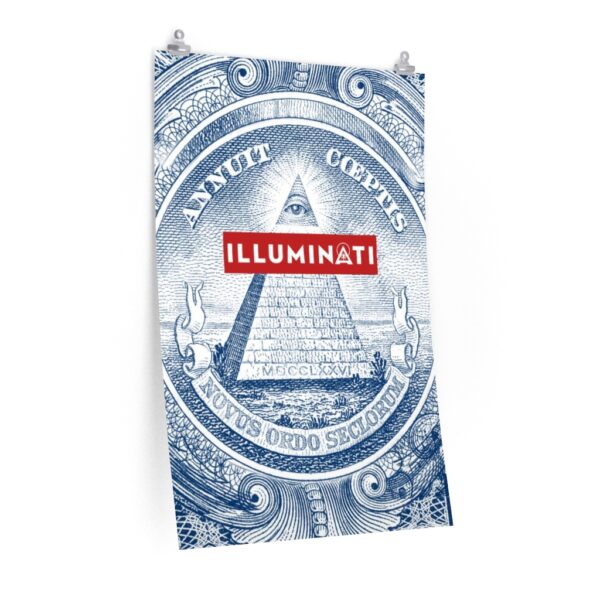Novus Ordo Seclorum is a Latin phrase meaning “New Order of the Ages” and signifies the beginning of a new era. It appears below the All-Seeing Eye and the Pyramid – with the Illuminati’s Insignia – on this large poster banner.